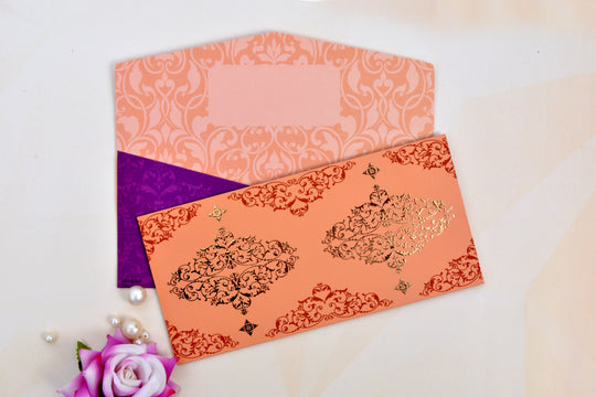 Peach Swirl Damask Shagun Envelope- Pack of 10 (With Luxor Marker)