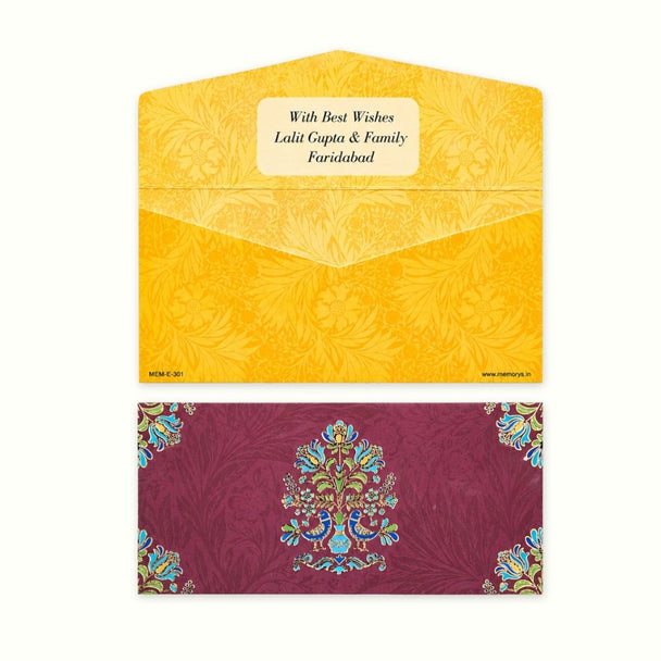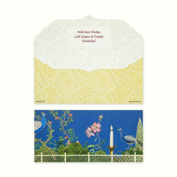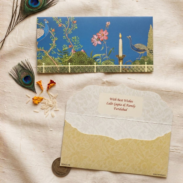 Festive Peacock Garden Personalised Shagun Envelope Premium – Pack of 20