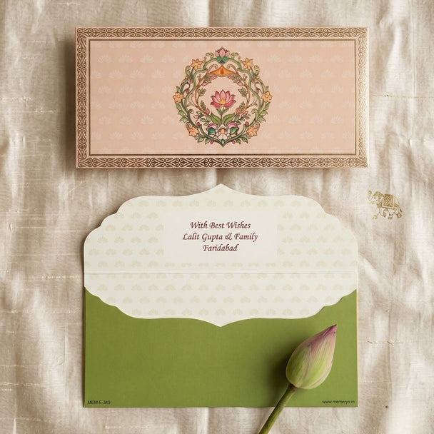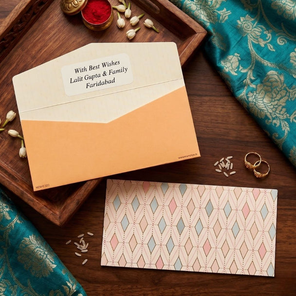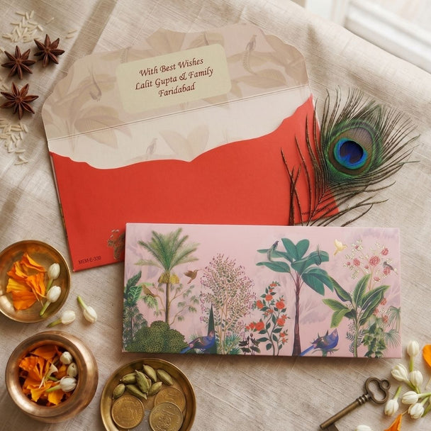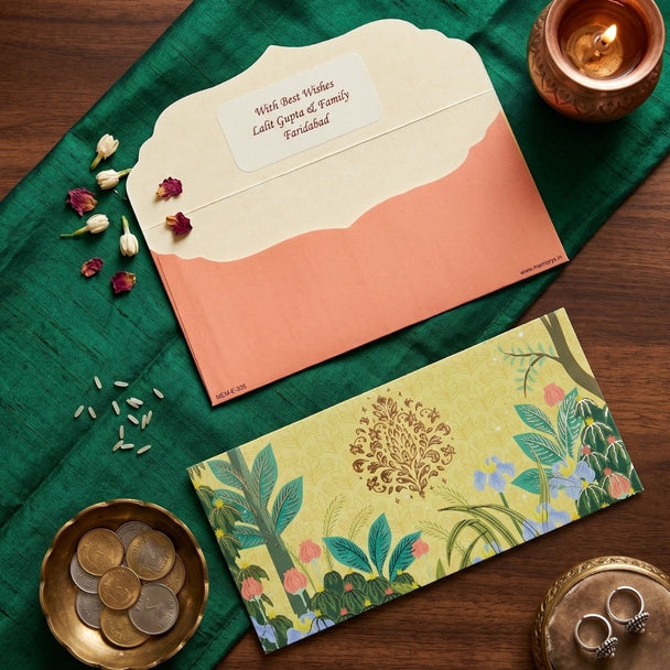 Peach Heritage Garden Personalised Shagun Envelope Premium – Pack of 20