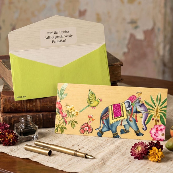 Royal Elephant Lime Personalised Shagun Envelope Premium – Pack of 20