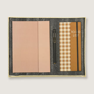 Each hamper comes packed in a sleek gift box with premium-quality stationery essentials:
