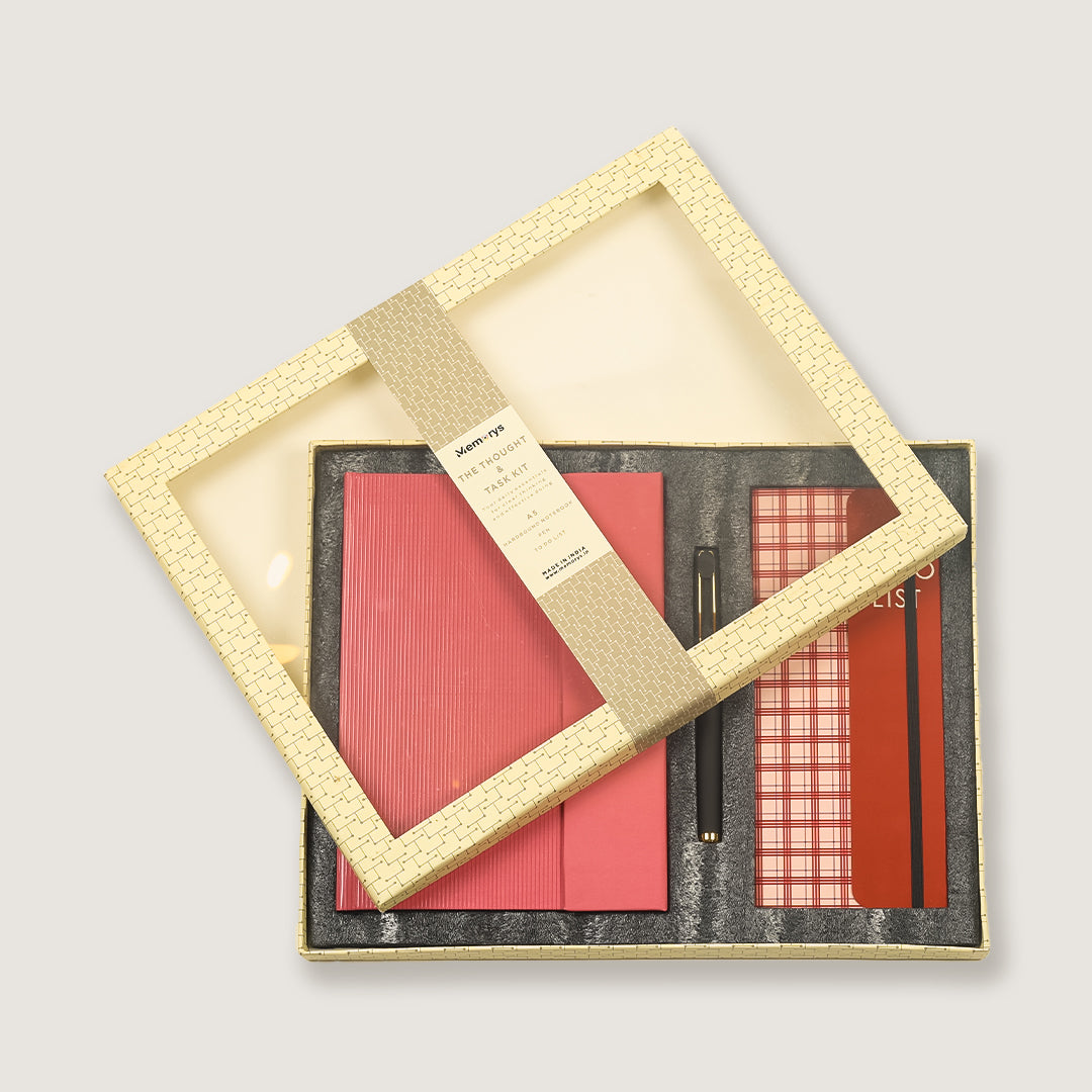 Each hamper comes packed in a sleek gift box with premium-quality stationery essentials: