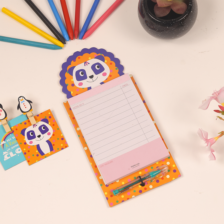Add cuteness to your daily routine with the Panda Stay Organised Magnetic Notepad. Perfect for shopping lists, meal planning, or quick reminders, this adorable panda keeps you organised in style. Strong magnetic backing ensures it sticks securely to your fridge, and the included pen makes jotting notes quick and easy.