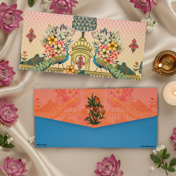 Royal Peacock Garden Shagun Envelope - Pack of 10 (With Luxor Marker)