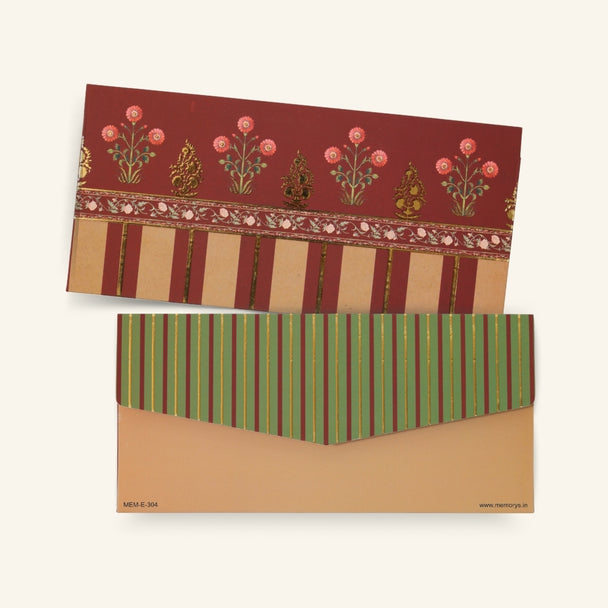 Maroon Blossom Stripes Shagun Envelope - Pack of 10 (With Luxor Marker)