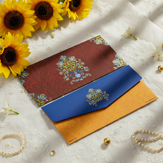 Featuring alternating maroon stripes with floral accents, this envelope is perfect for refined gifting.Size: 7.25" X 3.75" [185 mm X 93 mm]Paper: 250 gsm SBS BoardPrinting: 4 + 2 Color Printing with Raised Gold Foil enhancementLamination:...Regular price Rs. 299.00 -