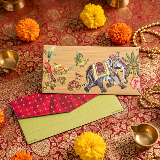 Elephant Procession Shagun Envelope - Pack of 10 (With Luxor Marker)