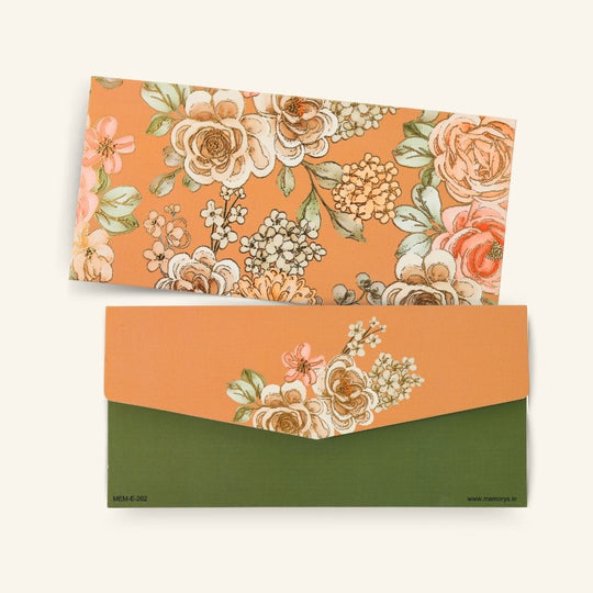 An olive-green background with dainty floral motifs creates a subtle yet classy envelope for gifting.Size: 7.25" X 3.75" [185 mm X 93 mm]Paper: 250 gsm SBS BoardPrinting: 4 + 2 Color Printing with Raised Gold Foil...Regular price Rs. 299.00 -