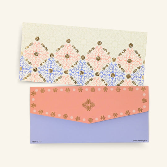 Inspired by heritage tile designs, this pastel envelope is a blend of artistry and tradition.Size: 7.25" X 3.75" [185 mm X 93 mm]Paper: 250 gsm SBS BoardPrinting: 4 + 2 Color Printing with Raised Gold Foil...Regular price Rs. 299.00 -