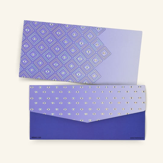 A vibrant purple envelope with radiant diamond patterns adds a regal charm to your gifting.Size: 7.25" X 3.75" [185 mm X 93 mm]Paper: 250 gsm SBS BoardPrinting: 4 + 2 Color Printing with Raised Gold Foil...Regular price Rs. 299.00