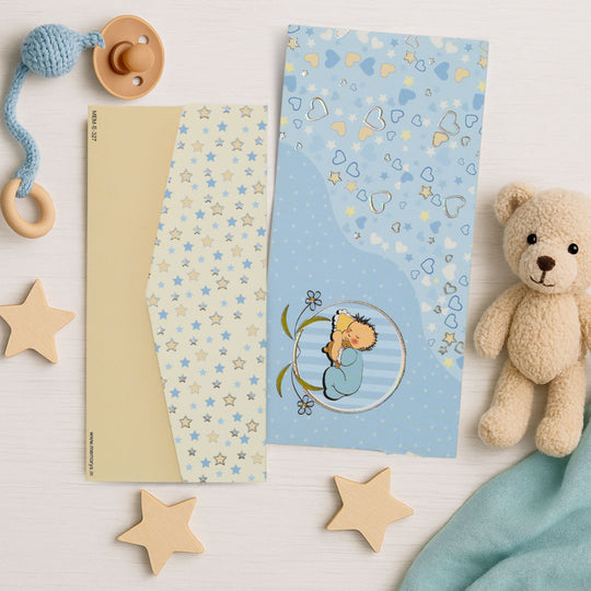 Soft baby blue hues with playful elephant graphics make this envelope ideal for baby showers or naming ceremonies.Size: 7.25" X 3.75" [185 mm X 93 mm]Paper: 250 gsm SBS BoardPrinting: 4 + 2 Color Printing with...Regular price Rs. 299.00 -