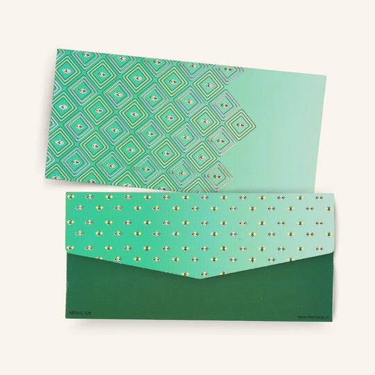 A glowing green base with diamond detailing makes this envelope both festive and stylish.Size: 7.25" X 3.75" [185 mm X 93 mm]Paper: 250 gsm SBS BoardPrinting: 4 + 2 Color Printing with Raised Gold Foil enhancementLamination:...Regular price Rs. 299.00 -