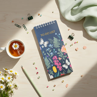 Introducing our Butterfly Hardbound Wiro To Do List Notepads. Keep your tasks organized and on track with our durable and stylish notepads. Featuring a beautiful butterfly design, it is perfect for both personal and professional use. Stay productive with ease and convenience.