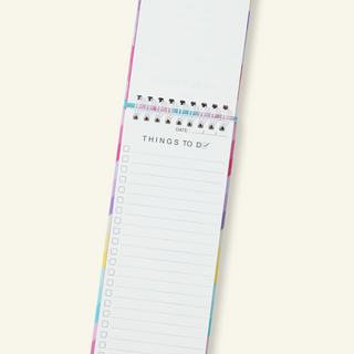 This hardbound wiro notepad features a vibrant rainbow zig zag design and a handy to-do list format. Perfect for staying organized and on top of your tasks, whether at work, home, or on the go. A stylish and functional addition to any stationery collection.